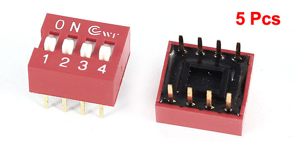 5 Pcs Red 2.54mm Pitch 8 Pins 4 Positions Ways Slide Type DIP Switch