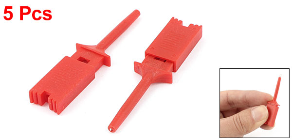 5 Pcs Red 2" Length Meter Multimeter Lead Wire Testing Split Hooks Clip