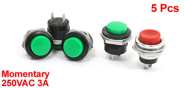 5 Pcs Red Green Round Flat Button Momentary SPST Pushbutton Switch 250VAC 3A