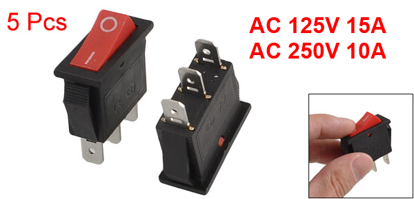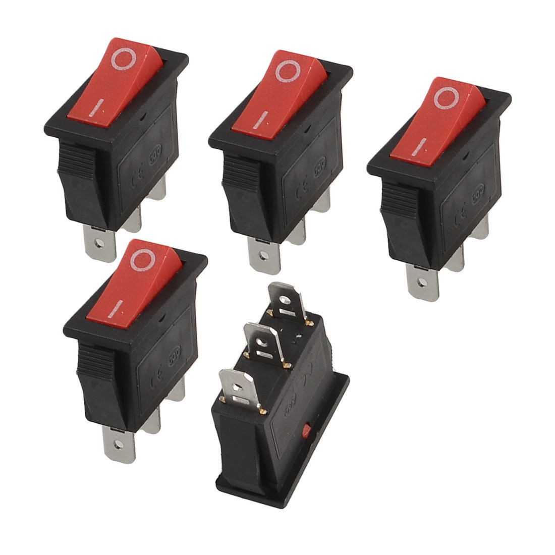 5 Pcs Red Indicator Light 3 Pin SPST ON OFF Rocker Boat Switch