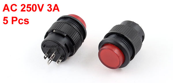 5 Pcs Red Light AC 250V 3A SPST Momentary Type Push Button Switch