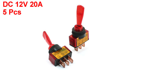 5 Pcs Red Light Pilot Lamp SPST ON/OFF 2 Position 3P Car Toggle Switch DC 12V 20A
