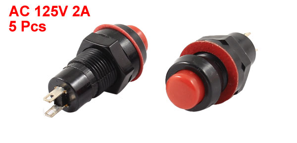 5 Pcs Red SPST Momentary Push Button Switch DS-211 AC 125V 2A 2P