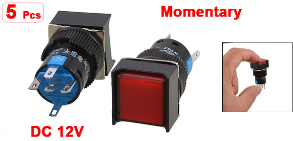 5 Pcs Red Square Cap DC 12V Light 1NO 1NC 5 Pins Push Button Switch