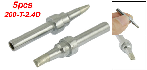 Product Name Soldering Iron Tip Model 200-T-2.4D Material Metal Design Chisel Total Length 32mm/1.2" Shank Diameter 4mm(Outside), 2mm(Inside) Chisel Width 3mm Color Silver Tone Weight 17g Package Content 5 x Soldering Iron Tip - Reviews
