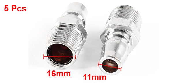 5 Pcs Silver Tone 16mm Male Thread to 11mm Outside Dia Quick Coupler PM30