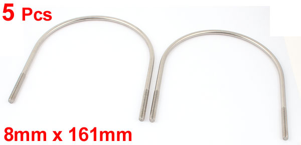 5 Pcs Silver Tone 304 Stainlesss Steel Round Bend U Bolt 8mm x 161mm