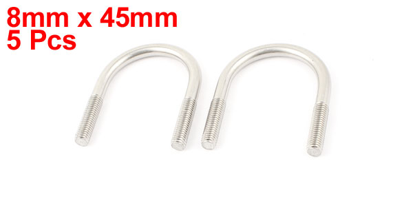 5 Pcs Silver Tone 304 Stainlesss Steel Round Bend U Bolt 8mm x 45mm