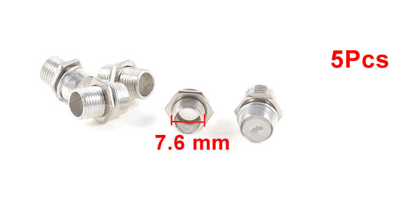 Product Name LED Holder Fit LED Diameter 5mm Hole Diameter 6 mm / 0.24" Thread Diameter 7.6 mm / 0.3" Total Length 13 mm / 0.5" Plastic Insert Size 7 x 7 mm / 0.27" x 0.27" (L*D) Material Metal, Plastic Color Silver Tone, Clear Net Weight 10g Package Content 5 x LED Holder