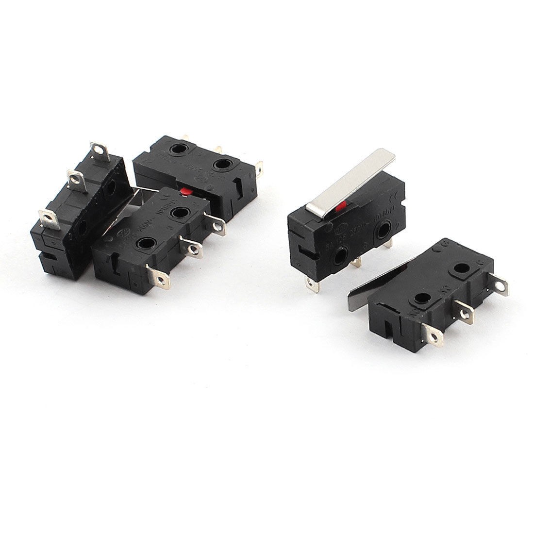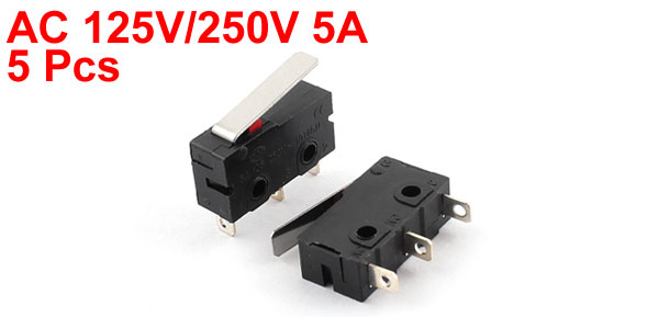 Main Color Black, Silver Tone Country of Manufacture CHINA Action Type Momentary Actuator Type Long Hinge Lever Material Plastic, Metal Lever Size 17 x 4mm/0.67" x 0.16"(L*W) Contact Type SPDT 1NO 1 NC Product Name Micro Limit Switch Pins 3 Net Weight 10g Rated AC 125V/250V 5A Package Content 5Pcs x Micro Limit Switch Body Size 20 x 6 x 10mm/0.8" x 0.24" x 0.4"(L*W*H) - Reviews