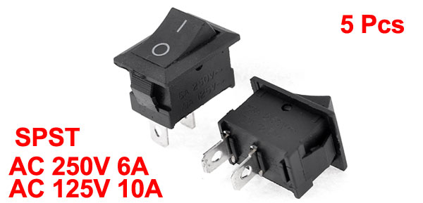 5 Pcs SPST 2 Terminals 2 Positions Boat Rocker Switch AC 6A/250V 10A/125V