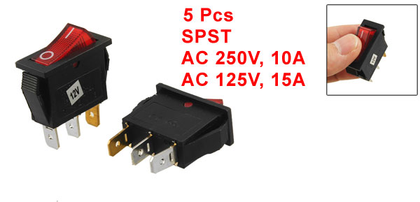 Light Woltage 12V Model KCD3-102N Color Red and Black Size 3.2 x 1.3 x 3.8 cm / 1.3" x 0.51" x 1.5" (L*W*H) Mounting Size 25.5 x 10.5mm / 1" x 0.41" (L*W) Material Plastic and Metal Weight 35g Package Content 5 x Rocker Switch - Reviews