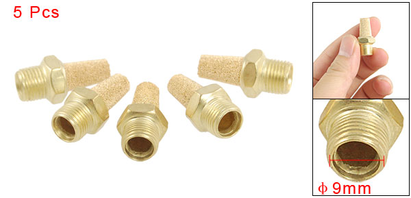 Inside: 6mm/ 0.23"Sintered Part Size 13 x 8mm/ 0.51" x 0.31"(L*Max.D) Total Length(Each) 25.5mm/ 1" Material Brass Color Gold Tone Net Weight 30g Package Content 5 x Pneumatic Silencer Muffler - Reviews