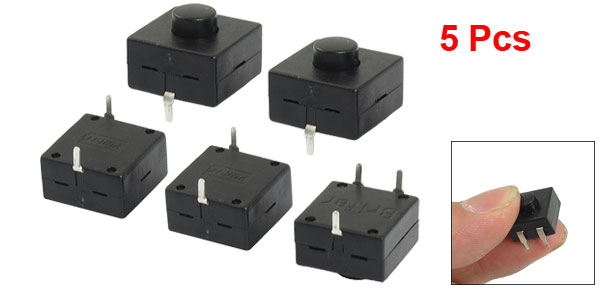 5 Pcs Vertical 2 Pins Square Latching Push Button Switch for Electric Torch