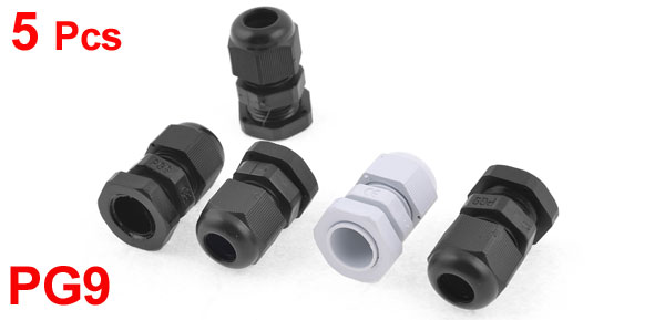 5 Pcs Waterproof PG9 Plastic Cable Glands Fasteners White Black