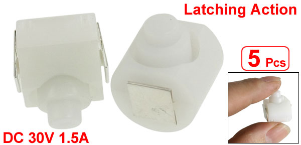 5 Pcs White Cylinder Shaped Latching Push Button Switch for Electric Torch