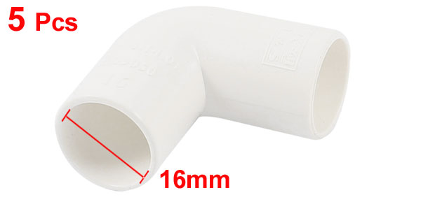 5 Pcs White PVC 16mm Inner Dia 90 Degree Bent Wire Pipe Connector
