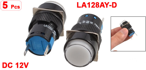 Product Name Indicator Light Model No. LA128AY-D Working Voltage DC 12V Light Color White Shell Color Black, White, Blue Terminals Quantity 2 Pins Mounting Hole Diameter 16mm / 0.63" Overall Size (Approx) 18 x 40mm/ 0.71" x 1.6" (D*H) Weight 34g Package Content 5 Pcs x Indicator Light - Reviews