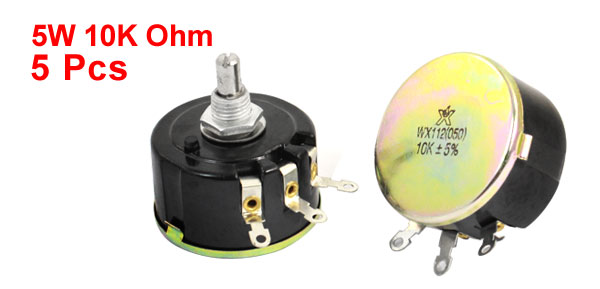 5 Pcs WX112(050) 6mm Shaft 3 Terminals Wire Wound Potentiometer 10K Ohm 5W