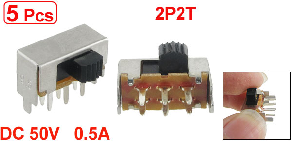 5 Pcs x 4mm High Side Knob 6 Pin 2 Position DPDT 2P2T Slide Switch 0.5A 50V DC