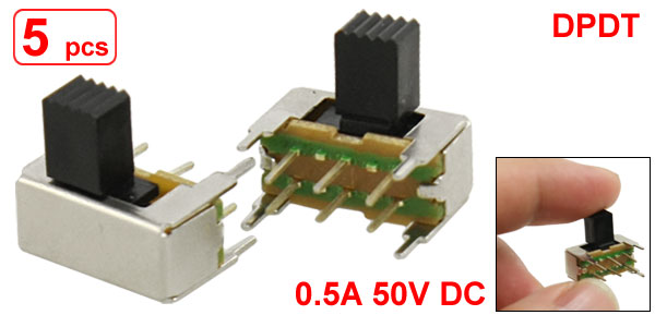 5 Pcs x 7mm High Side Knob 6 Pin 2 Position DPDT 2P2T Slide Switch 0.5A 50V DC