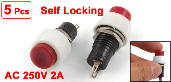 5 Pcs x AC 250V 2A NO OFF-(ON) Red Cap Self Locking Round Push Button Switch