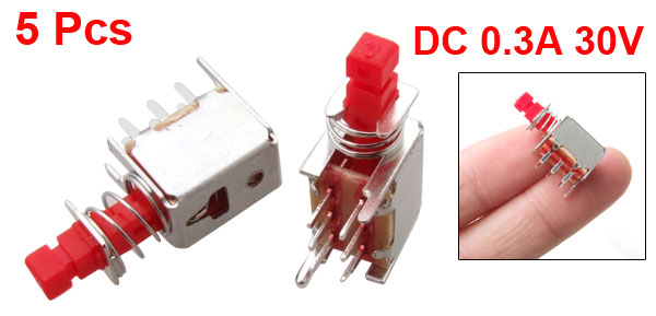 5 Pcs x Latching Unidirectional Push Button Switch DC 30V 0.3A 6 Pin