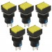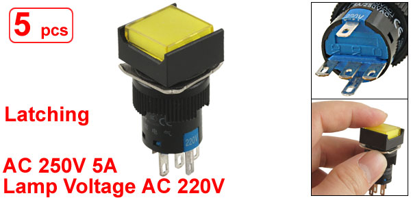 5 Pcs Yellow Lamp Latching 1NO 1NC Square Panel Push Button Switch AC 220V