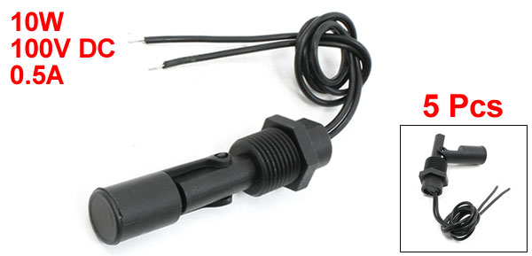 Product Name Floating Switch Model No. ZPC7 Max Contact Rating 10W Max Switching Voltage 100V DC Max Switching Current 0.5A Max Breakdown Voltage 220V DC Max Carry Current 1A Max Contact Resistance 100mΩ Temperature Rating -10 / +85 °C Material Plastic, PP Thread Dia(Approx) 20mm / 0.79" Thread Length 16mm / 0.6" Switch Total Length 85mm / 3.3" Cable Length 34cm / 13.4" Color Black Net Weight 123g Package Content 5 x Floating Switch - Reviews