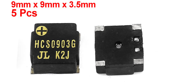 5 Pieces 9mm x 9mm x 3.5mm Black Square SMT SMD Buzzer DC 1.5V 90mA