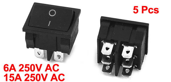 5 Pieces AC 250V 15A 6A Black DPDT On/On Position Rocker Switch