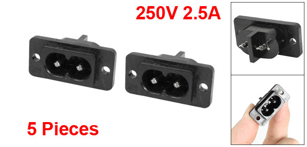 5 Pieces AC 250V 2.5A IEC320 C8 Screw Mount Inlet Plug Power Socket Black