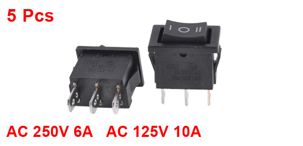 5 Pieces AC 250V/6A 125V/10A 3 Pin SPDT Snap in on/off/on Rocker Switch
