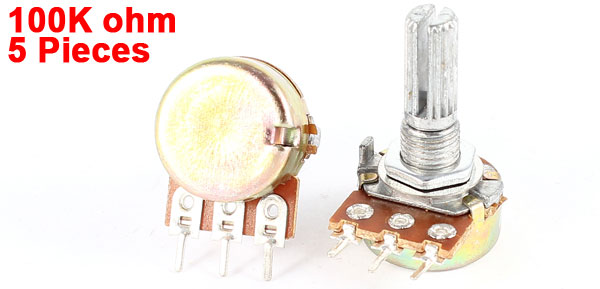 Product Name Potentiometer Resistance Value 100K ohm Power AC 220V 6A Adjustment Type Top Adjustment Type Single Linear(Type B) Features Knurled Shaft Shaft Diameter 6mm / 0.24" Shaft Length 13mm / 0.55" Mounting Thread Diameter 6.6mm / 0.26" Base Size 16 x 7mm / 0.63" x 0.28"(D*H) Total Height 29mm/1.1" Material Metal, Electronic Parts,Carbon Film Net Weight 37g Package 5 x Potentiometer - Reviews
