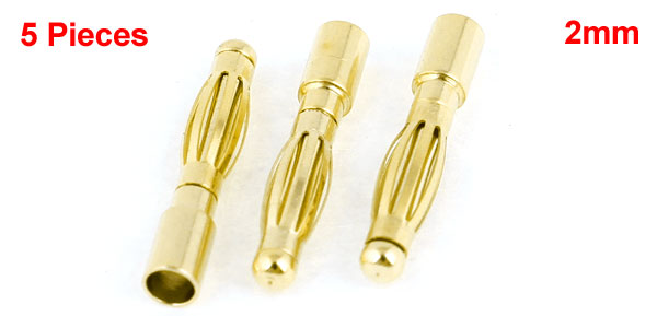 5 Pieces Gold Tone Metal RC Banana Bullet Plug Connector Male 2mm