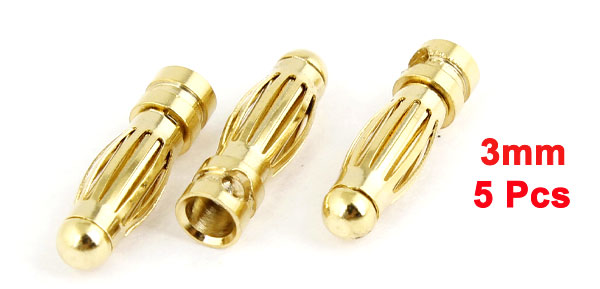 5 Pieces Gold Tone Metal RC Banana Bullet Plug Connector Male 3mm