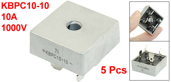 5 Pieces KBPC10-10 Metal Case Half Wave Diode Bridge Rectifier Gray Black