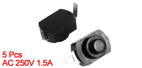 5 Pieces Vertical 2 Pin Latching Action Torch Push Button Switch Black