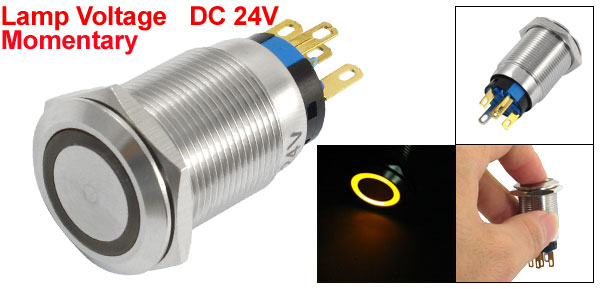 Item Name Stainless Push Button Switch Operation Type Momentary Contact 1NO 1NC Head Design Flat Round Lamp Voltage DC 24V Switch Rating AC 250V 5A Operation Pressure 2.5-4N Lamp Color Yellow Pin Number 5 Thread Diameter 17mm/0.6'' Total Size 40 x 25mm/1.5'' x 0.9''(L*Max.W) Material Stainless Steel, Electric Parts Housing Color Silver Tone Net Weight 22g Package Content 1 x Stainless Push Button Switch - Reviews