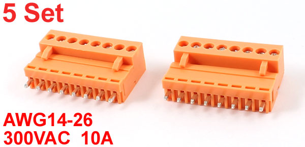5 Set AC 300V 10A 3.96mm Spacing 8 Pin Screw Pluggable Terminal Block Orange
