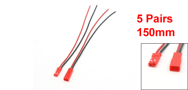 5 Sets RC Electric Planes 2Pin JST Male Female Plug Cable Wire 22AWG 15cm 5.9"