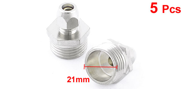 Product Name Quick Coupler Male Thread Diameter 21mm / 0.83" Thread Size 1/2" PT Fit Tube Outside Dia. 6mm / 0.24" Overall Size 28 x 24mm / 1.1" x 0.9" (Min L*Max W) Color Silver Tone Material Metal Weight 114g Package Content 5 x Quick Coupler - Reviews