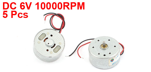Product Name DC Motor Rated Voltage DC 6V Rated Speed 10000 RPM Shaft Diameter 2mm/0.08" Motor Body 25 x 12mm/1" x 0.5"(D*H) Cable Length 65mm/2.6" Total Length 19mm/0.7" Material Metal, Electronic Parts Color Gray Weight 106g Package Content 5 x DC Motor - Reviews