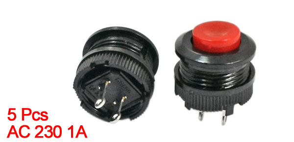 Item Name Push Button Switch Action Type Momentary Contact Type SPST Working Voltage Current AC 230V 1A Button Shape Round Shaped Button Diameter 9.5mm/0.37" Mounting Diameter 14mm/0.55" Total Size 21 x 16mm/0.83" x 0.63"(H* Max.D) External Material Plastic, Metal Color Red, Black Net Weight 12g Package Content 5 x Push Button Switches - Reviews