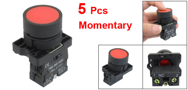 5 x 22mm 1 NC N/C Red Sign Momentary Push Button Switch 600V 10A ZB2-EA42