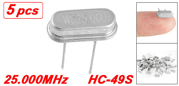5 x 25.000 MHz 25MHz Crystal HC-49S Through Hole Low Profile