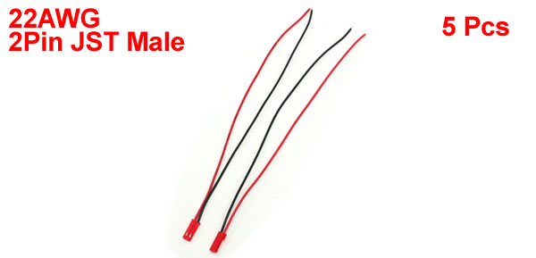 5 x 2Pin JST Male Connector 22AWG Wire 7.9" 200mm for RC Plane Battery Motor