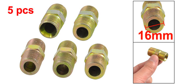 Product Name Hydraulic Connector Thread Size 3/8" x 3/8" PT Thread Dia. 16mm x 16mm Inner Hole Dia. 9mm/ 0.35", 8mm/ 0.31" Overall Size 34 x 17mm / 1.4" x 0.67"(L*Max.D) Material Metal Net Weight 180g Package Content 5 x Hydraulic Connector - Reviews