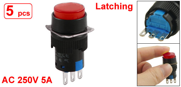 5 x 3 Pins 1NO 1NC Red Latching Push Button Switch AC 250V 5A