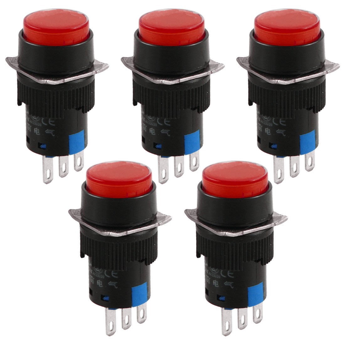 Item Name Push Button Switch Contact Type 1NO, 1NC Switch Type Latching Type Switch Working Voltage AC 250V, 5A Thermal Current(Ith) AC 220V 5A Switch Color Black, Red Pin Number 3 Button Cap Diameter 15mm/ 0.59" Mounting Thread Dia. 16mm/ 0.63" Total Size 18 x 18 x 41mm/ 0.71" x 0.71" x 1.6"(L*W*H) Material Plastic, Electronic Parts Weight 31g Package Content 5 x Push Button Switch - Reviews